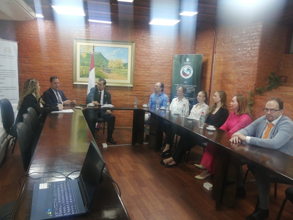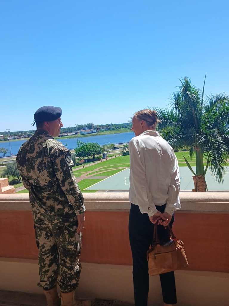 Via kennissen van ons worden wij een beetje at random uitgenodigd in ‘Het Congres van Paraguay’. Daar spreken wij met enkele vooraanstaande Congresleden (-Paraguayanen met veel invloed, zo schijnt-) die ons tevens uitnodigen om het werkpaleis van de President te gaan bekijken. Uiteraard passeert er daar ter plekke veel historie de revue en na een goede dosis nationalistisch borstklopperij van onze gids, begrijpen we nu onder andere nog beter hoe het komt dat er een lange tijd in Paraguay zoveel vrouwen zijn geweest zonder man… Wij lunchen in een prachtig klassiek gebouw aan de overkant van het paleis waar we bij interessante mensen aanschuiven, waaronder een relatief jonge, net afgestudeerde relatiemanager van de Paraguayaanse ambassade in Rusland… Food for conversations.