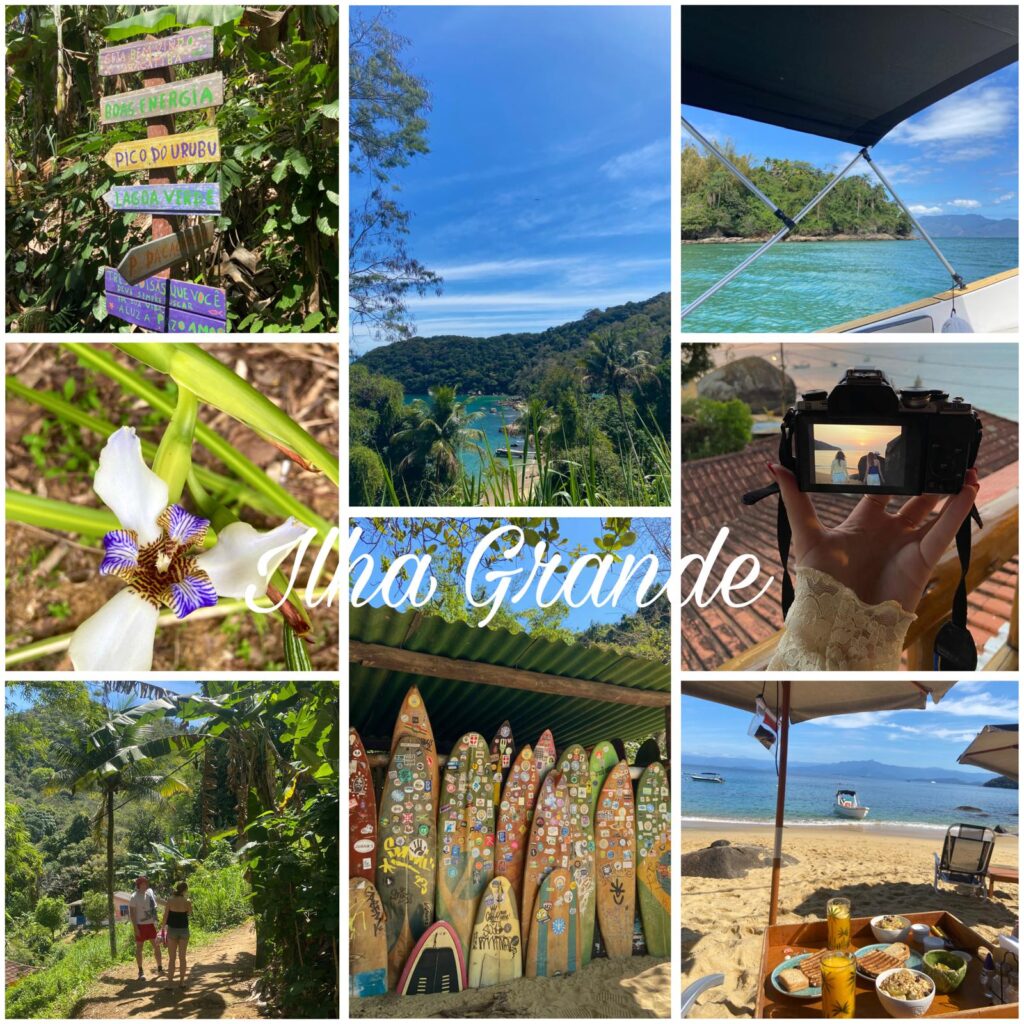 Ilha grande, ons eiland, er rijden daar géén auto’s. Met de boot gaan we er naar toe, wauw wat een paradijs is dit. Hier hebben we echt een vakantiegevoel, even helemaal niks… Wat een rust, kalmte en dan die schone lucht; een mix van bloemen, planten en zee geuren… We ontbijten op het strand en eten onze favoriete acaibowl, hoofdelijk gemaakt van de Braziliaanse vrucht de Acaíbes met mango òf banaan, eilandhoning (-my goodness wat lekker!-) en granola. Zwemmen in de kraakheldere zee en mooie jungle-hikes maken… We zien onderweg heel veel dieren zoals aapjes, leguanen, spinnen, kleurrijke vlinders en vogels, etc. Logisch wel zo in beschermd natuurgebied, The Atlantic Rain Forest. Genieten hoor!